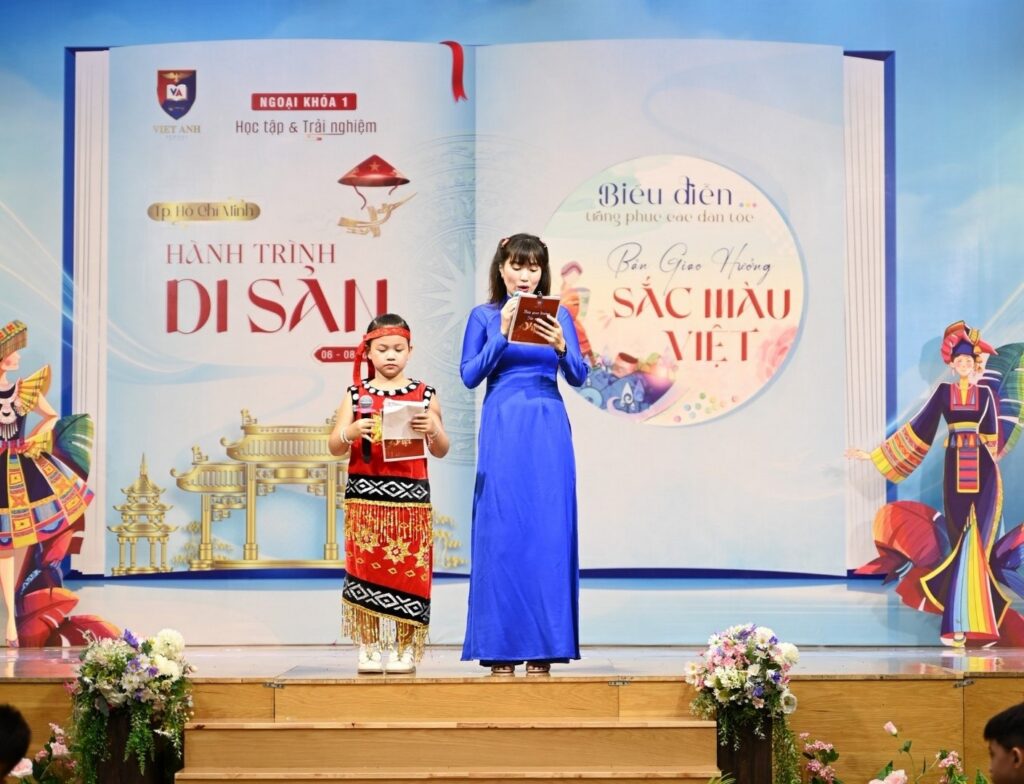 “VIẾT TIẾP CÂU CHUYỆN HÒA BÌNH” – chủ đề chính của Ngoại khóa 1. Trong trang sách hòa bình ấy, câu chuyện “sắc vải” dệt nên những tà áo, khăn đống và trang phục độc đáo của 54 dân tộc nước Việt đã trở thành nét điểm tô tỏa sáng qua những bước Catwalk giữa phụ huynh và học sinh. Chương trình mang đến một hành trình đầy sắc màu, vừa giáo dục vừa giải trí, giúp học sinh và phụ huynh tự hào về văn hóa Việt Nam và thể hiện thông điệp hòa bình, yêu thương giữa các thế hệ.