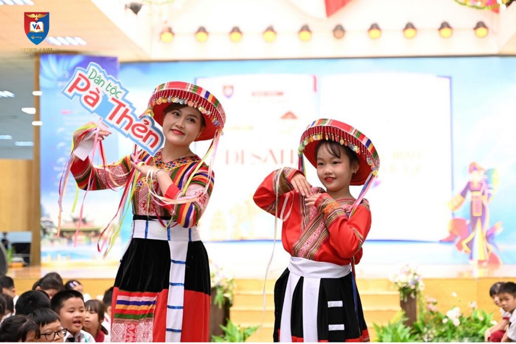 Trong không khí sôi động, chương trình mở đầu với nhiều hoạt động thú vị, ngay từ sáng sớm, các bạn học sinh đã tập trung ở khu vực chính của sân khấu, mong chờ được đón xem những phần trình diễn thời gian đa sắc màu của 54 dân tộc anh em nước Việt. Điều đặc biệt tại hoạt động này là sự đồng hành và tham gia của Phụ huynh đã góp phần tạo nên một sàn Catwalk ấn tượng với những trang phục truyền thống trải dài trên mảnh đất hình chữ S. Đây không chỉ là cơ hội để Phụ huynh và các con cùng nhau tạo nên những khoảnh khắc gắn kết, vui tươi và ý nghĩa trên sân khấu. Chương trình còn mang đến một hành trình đầy sắc màu, vừa giáo dục vừa giải trí.