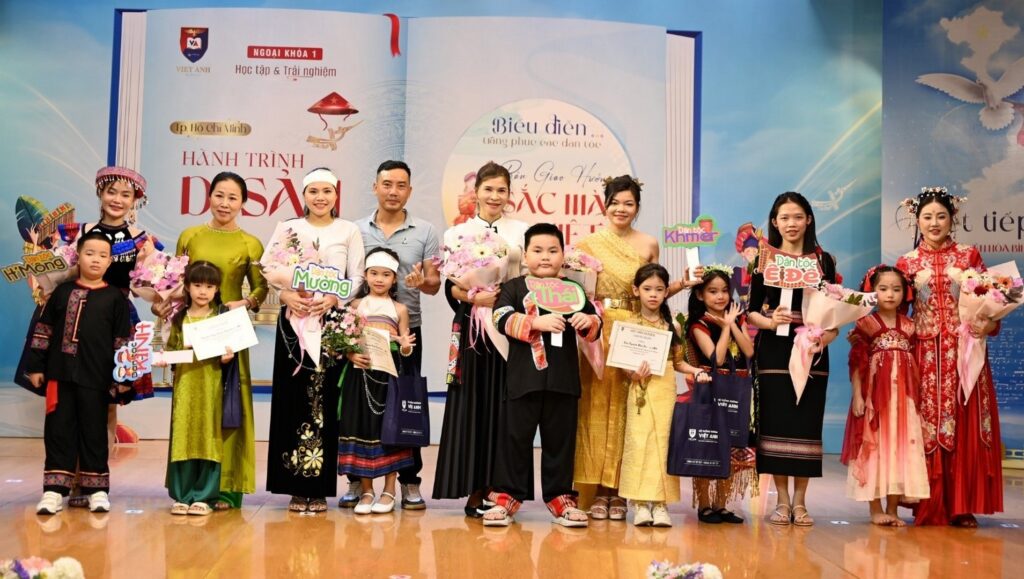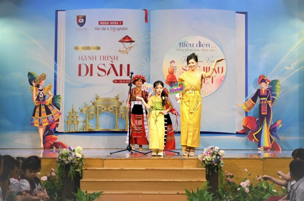 Mỗi trang phục dân tộc trong phần trình diễn là một hành trình cho học sinh thêm góc nhìn về miền đặc trưng của từng vùng.