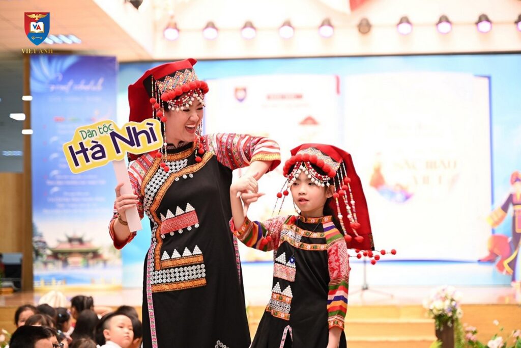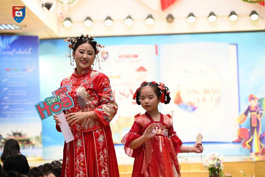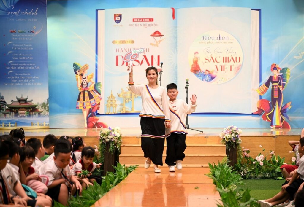 Sân khấu Việt Anh 2 trở nên cuốn hút hơn bao giờ hết qua bước chân Catwalk của phụ huynh và học sinh cùng với đó là sắc màu trong trang phục dân tộc.