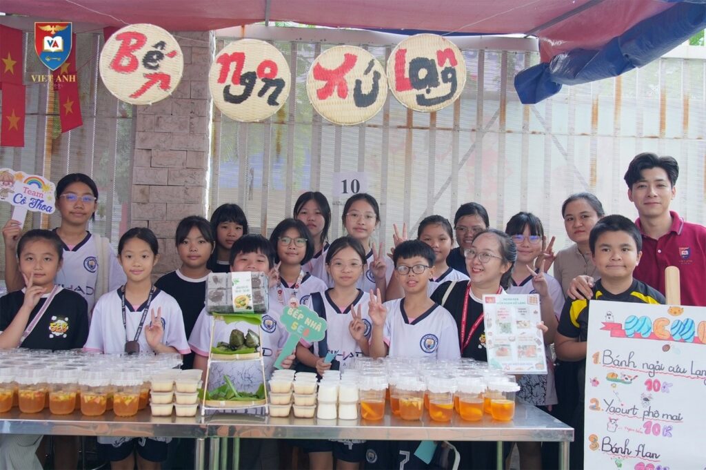 Song song đó, sự kiện “Ngày hội bếp Việt” trở thành một phiên chở quê hương thu nhỏ tại Việt Anh 2. Hoạt động diễn ra trong không khí sôi nổi và hào hứng. Các gian hàng độc đáo trải dài ẩm thực BẮC – TRUNG – NAM, mang đến tinh hoa ẩm thực của hương vị quê nhà. “Mỗi món ăn là một câu chuyện – Mỗi gian bếp là một nét Việt” thể hiện đặc trưng văn hóa ẩm thực vùng miền. Điều gây ấn tượng tại ngày hội là các lớp đều chọn cho mình một tên riêng, thêm nét đặc sắc cho gian hàng ẩm thực từ Bếp xưa Phố Hiến, Bếp ngon xứ lạng, bếp quê Sơn La, Bếp xứ nẫu đến Bếp Việt hương vị Cố Đô. Các món ăn cũng tạo nên hương vị đậm chất riêng của mỗi tỉnh: Chả lụi Biên Hòa, Bánh mì thịt Hố Nai, Bánh gai Hố Nai, chè Sen bánh ngải cứu đậu đỏ, mè đen, sữa đậu nành sương sáo, hến xúc bánh đa xứ Huế, chè Sen Cung Đình,…