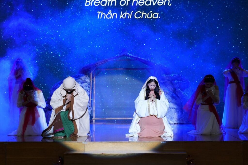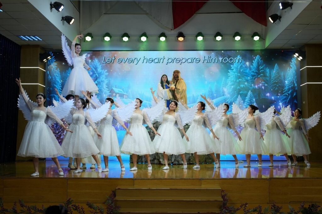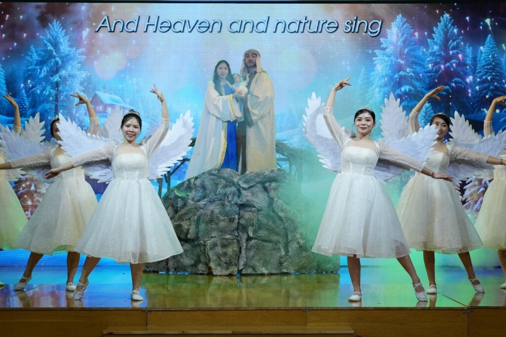 Điều đặc biệt là phần xen kẽ giữa việc các hoạt cảnh sinh động cho đến các tiết mục múa xuất sắc. “Breath of Heaven”, lời ca trầm lắng cùng điệu múa thu hút đã để lại nhiều dư vị cảm xúc. Không khí chương trình nghệ thuật Giáng sinh trở nên lung linh hơn với tiết mục múa “𝐉𝐨𝐲 𝐭𝐨 𝐭𝐡𝐞 𝐖𝐨𝐫𝐥𝐝 𝐚𝐧𝐝 𝐀𝐧𝐠𝐞𝐥𝐬 𝐖𝐞 𝐇𝐚𝐯𝐞 𝐇𝐞𝐚𝐫𝐝 𝐨𝐧 𝐇𝐢𝐠𝐡”, các thiên thần như reo lên niềm vui cho một tin tức tốt lành, trên nền nhạc vui tươi và hân hoan của bài thánh ca bất hủ, các “thiên thần” xuất hiện trong trang phục trắng tinh khôi, điểm xuyết đôi cánh nhẹ nhàng và ánh sáng lấp lánh. Từng động tác mềm mại hòa quyện cùng âm nhạc đã vẽ nên một bức tranh Giáng sinh trong sáng và ngập tràn hy vọng.