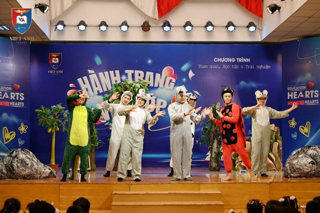 Điểm nhấn của chương trình chính là phần kịch nghệ hấp dẫn với sự xuất hiện của nhiều nhân vật đáng yêu như chú chuột tinh nghịch, chú voi dễ thương,…Với lối diễn xuất hài hước và duyên dáng từ các thầy cô trường Việt Anh 2, các bạn nhỏ như lạc vào thế giới của những câu chuyện kể. Qua đó, truyền tải những giá trị thông điệp tích cực cùng bài học sâu sắc về “sự khiến tốn, không nên tự tin quá coi thường mọi người xung quanh. Ai cũng có nhiều điểm mạnh riêng và mình cần biết yêu thương và đoàn kết với nhau hơn”.