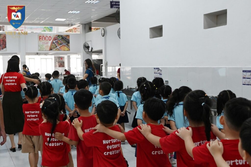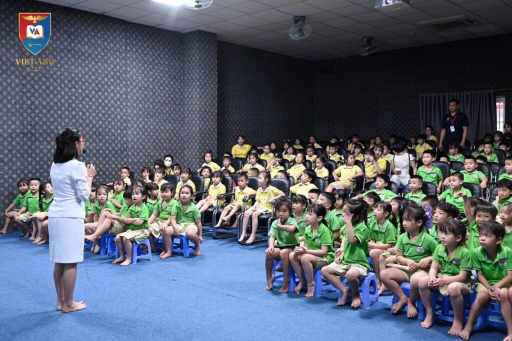 Trong hành trình trải nghiệm, các bé còn được tham quan toàn bộ không gian học tập và sinh hoạt của nhà trường từ thư viện mở hiện đại – nơi truyền cảm hứng yêu thích đọc sách, hồ bơi tiện ích giúp rèn luyện sức khỏe, nhà ăn khang trang đảm bảo dinh dưỡng cho học sinh, đến rạp chiếu phim mini – không gian giải trí ý nghĩa được thiết kế riêng tại Việt Anh 2. Đây cũng chính là một trong những điểm nổi bật của hệ thống trường Việt Anh, mang đến môi trường học tập vừa hiện đại vừa thân thiện cho học sinh.