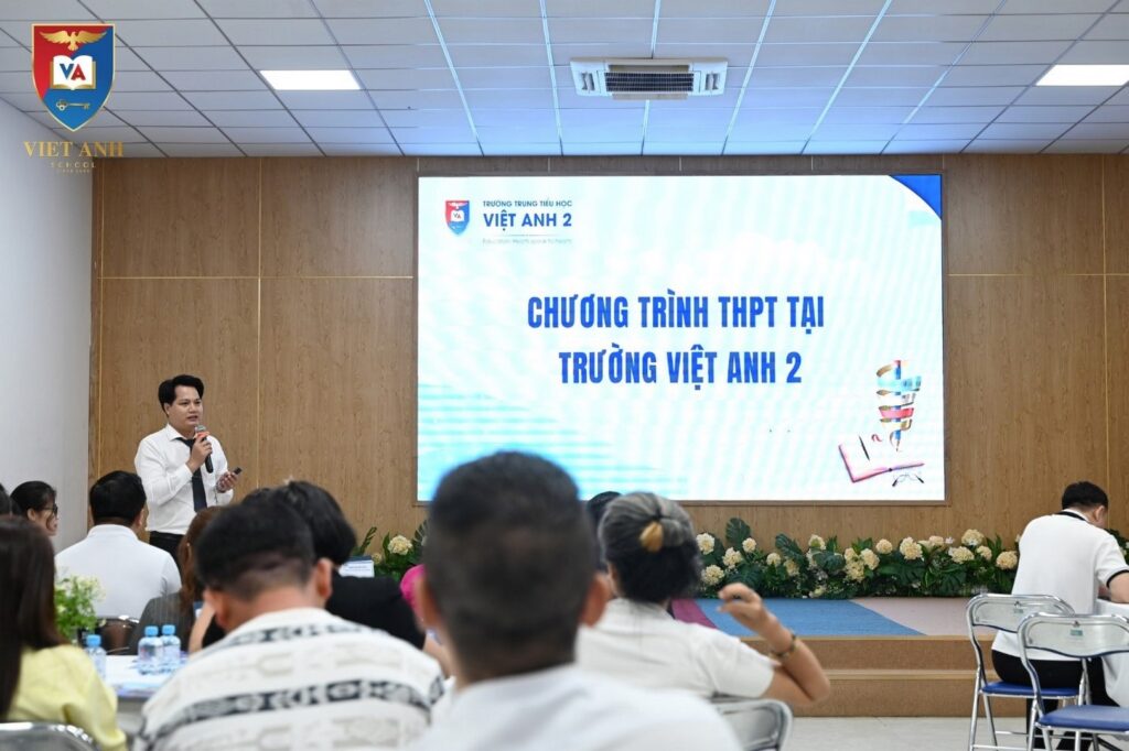 Bên cạnh đó, phần chia sẻ từ Thầy Nguyễn Khắc Minh – Phó Hiệu trưởng Nhà trường đã giúp phụ huynh hiểu rõ hơn về chương trình học bậc Trung học phổ thông. Ngoài chương trình chuẩn của Bộ Giáo dục, nhà trường còn triển khai các chương trình như MOET – ứng dụng thực tiễn, phát triển đa diện qua hoạt động trải nghiệm, chương trình Tiếng Anh Cambridge, cùng hệ sinh thái học tập hiện đại với Canvas LMS, lớp học đảo ngược và cá nhân hóa lộ trình học tập. Đây chính là nền tảng giúp học sinh phát triển toàn diện, sẵn sàng hội nhập và định hướng nghề nghiệp từ sớm.