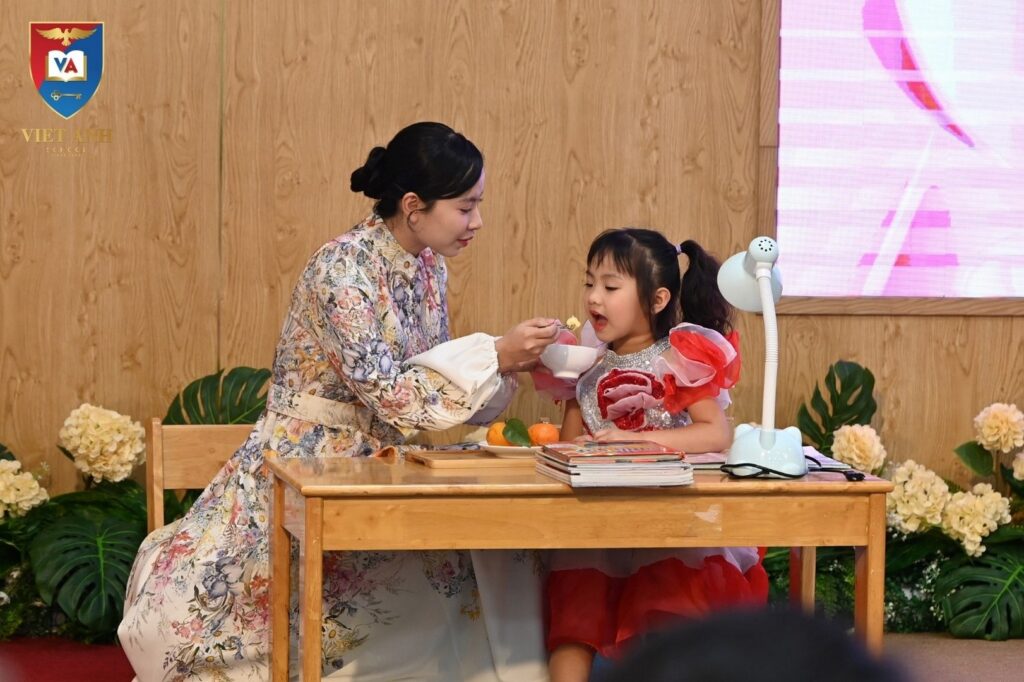 Bắt đầu từ lúc 15h00, Mở đầu chương trình, tiết mục “Ước mơ của mẹ”, một giai điệu nhẹ nhàng nhưng sâu lắng, chạm đến trái tim của mỗi người. Phần trình diễn đến từ em Nhật Linh (lớp 9D5), cô Lan Hương, bé Yến Vy (Winie) và Trúc Linh (lớp 1A1) đã mang lại những phút giây xúc động, giúp khán giả thêm một lần thấu hiểu và trân trọng những hy sinh thầm lặng của mẹ. Bên cạnh đó, tiết mục Dance sôi động từ các em học sinh khối Tiểu học cũng đã góp phần khuấy động không khí, mang lại sự tươi vui và năng lượng tích cực trong chương trình.