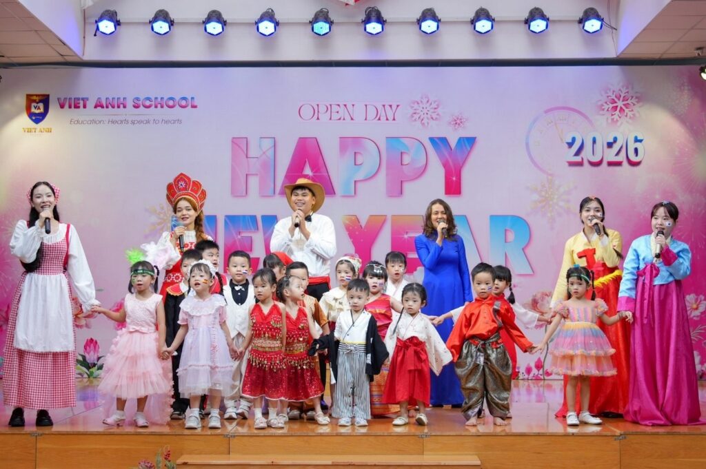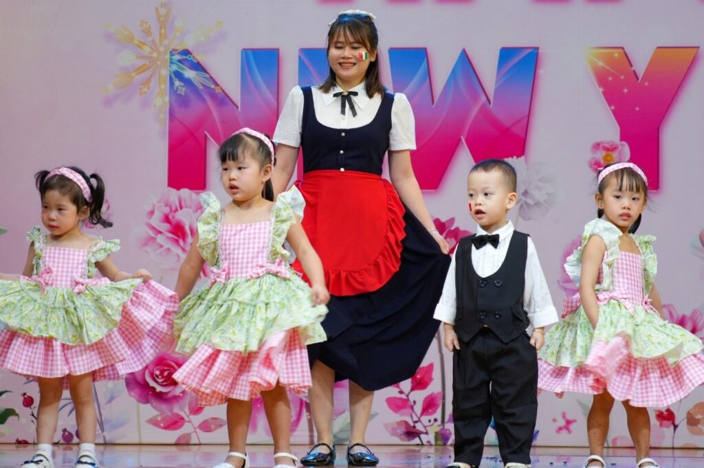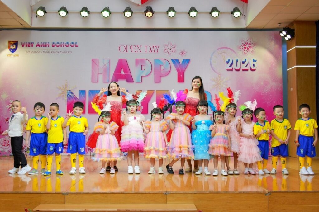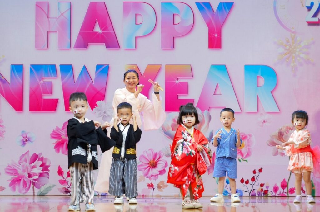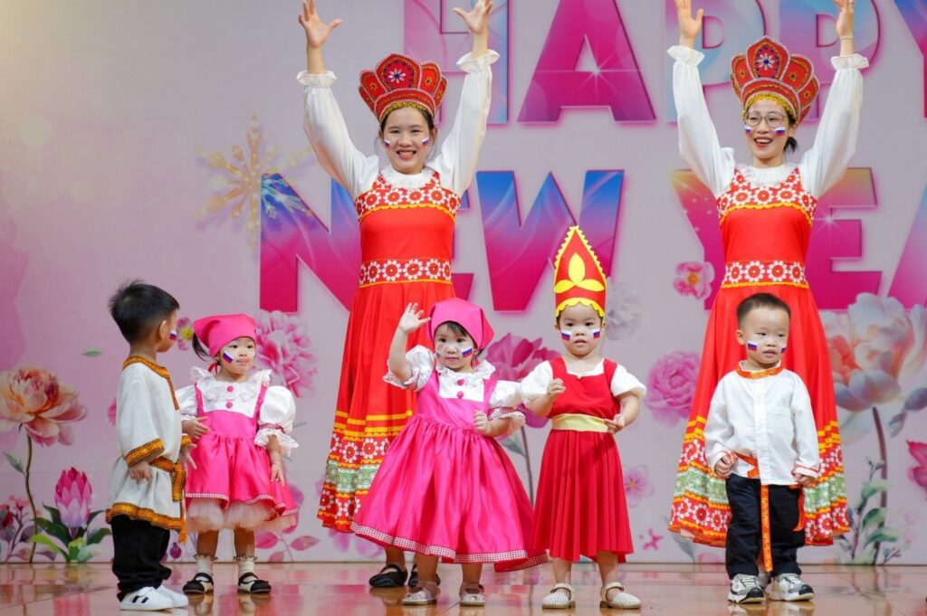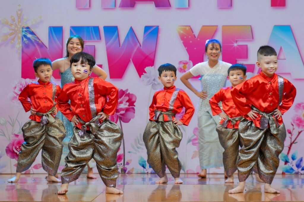 2 0 2 6 – Một năm hứa hẹn đánh dấu nhiều hành trình rực rỡ của nhà trường và “Vũ Hội Mừng Năm Mới” như một dấu ấn khắc ghi những thước phim đẹp cho các khoảnh khắc đón chào một khởi đầu mới, một hành trình mới. Chương trình là nơi các bé sẽ hóa thân thành những công dân nhí toàn cầu, khoác lên mình trang phục truyền thống của mười hai quốc gia (Liêng Nga Nga, Mỹ, Ý, Nhật Bản, Ấn Độ, Tây Ban Nha, Bồ Đào Nha, Việt Nam, Hàn Quốc, Hà Lan, Thái Lan và Brazil) và thể hiện những vũ điệu vô cùng đáng yêu, tự tin.