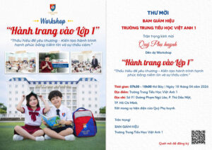 🌿 Bước vào Lớp 1 là một trong những cột mốc lớn nhất của tuổi thơ con, mở ra một trang mới đầy thú vị nhưng cũng nhiều cảm xúc đan xen. Việt Anh School trân trọng kính mời Quý Phụ huynh đến tham dự buổi Hội thảo đặc biệt với những chia sẻ tâm huyết từ Nhà sáng lập Hệ thống Trường Việt Anh